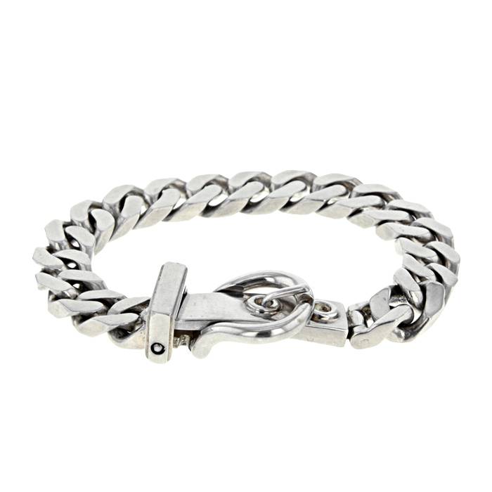 Muy bonito brazalete de la colección "Sellier" modelo pequeño de plata, compuesto de una elegante cadena de eslabones plana, adornado en el centro de una magnífica hebilla de cinturón geométrica.