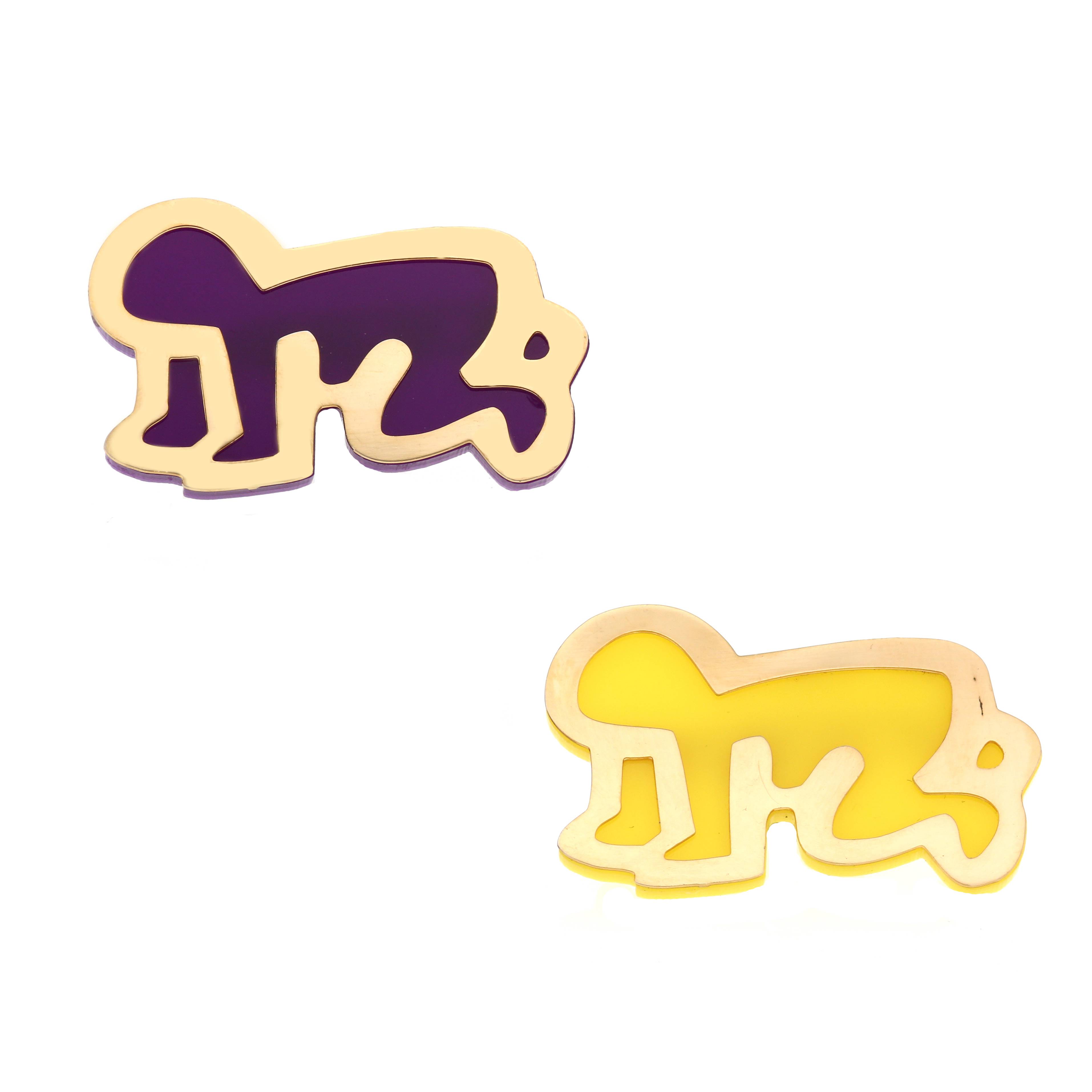 Broche-colgante época años 80 Keith Haring Bébé en PVD dorado, PVD violeta y PVD amarillo Ref Collector Square: 35 41 45