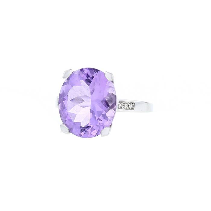 Sortija Mauboussin Bébé d'Amour de oro blanco, de amatista y de diamantes, compuesta de un anillo de oro blanco delicadamente engastado de diamantes de talla brillante, adornada en el centro de una amatista de talla óvalo pesando de aproximadamente 6,9 quilates.
