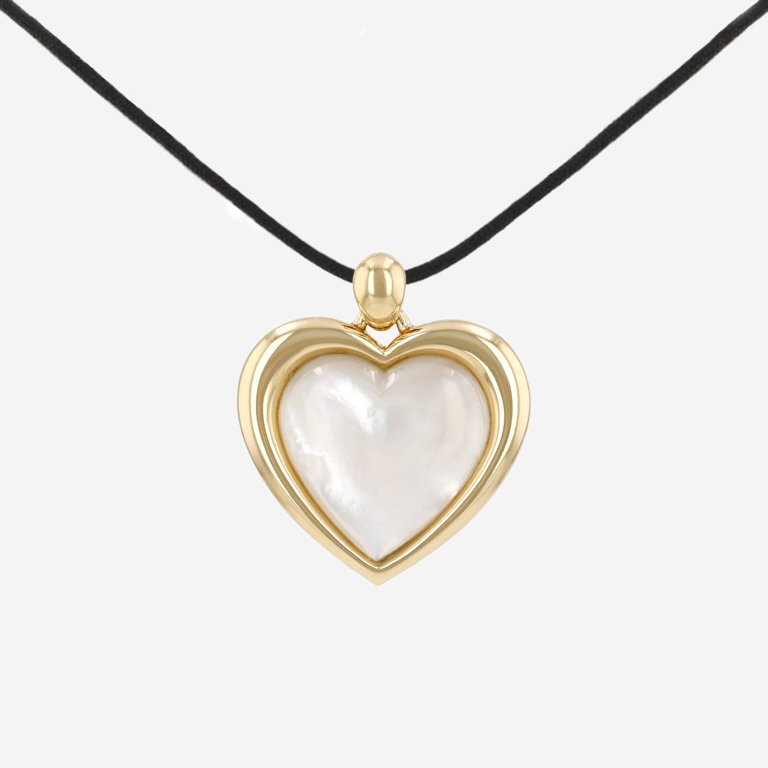 Colgante Mauboussin de oro amarillo y nácar, estilizando un importante corazón de oro amarillo, adornado de una placa abombada de nácar.