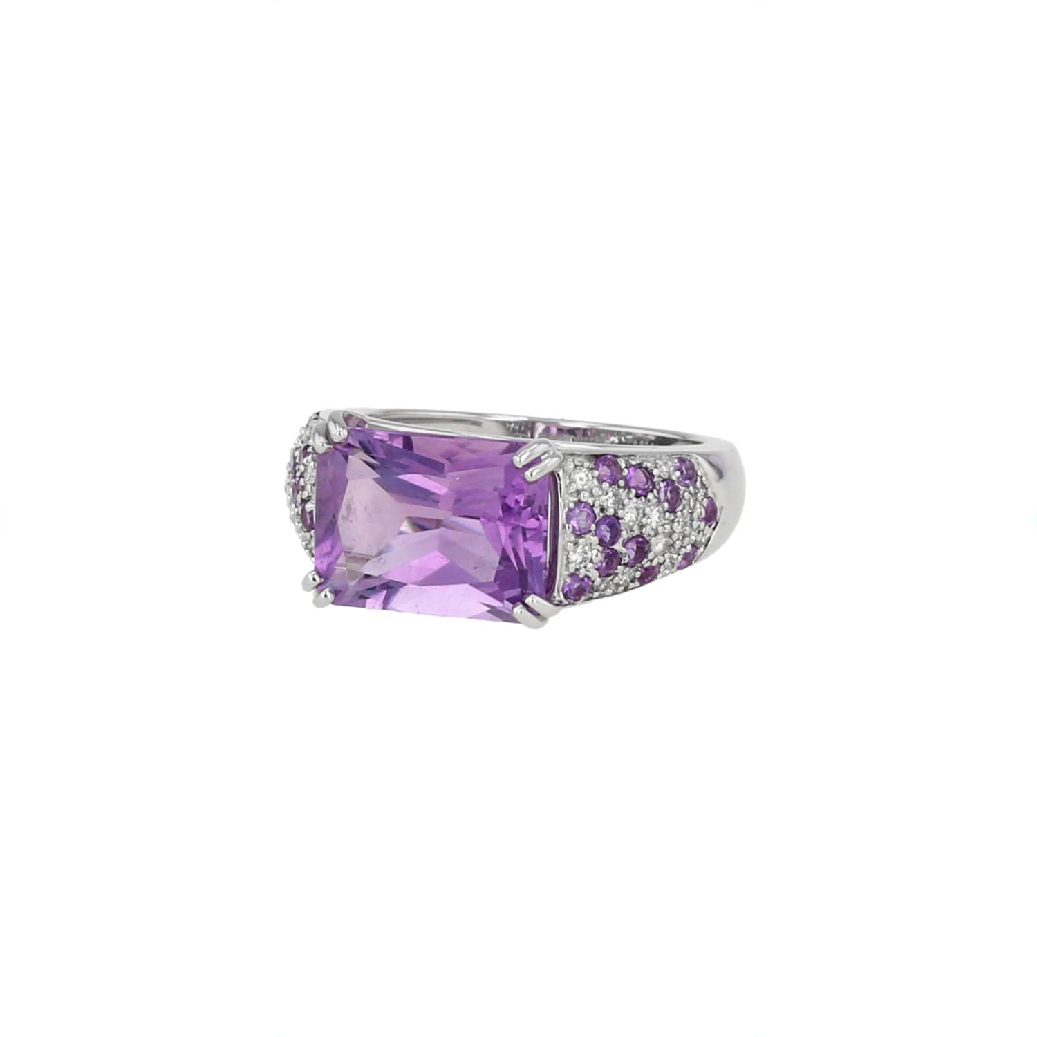 Sortija Mauboussin Désirez Amour de oro blanco, de amatista, y en diamantes, compuesta de una engaste de oro blanco, que sujeta en el centro una muy bonita amatista de talla rectangular, rodeada en la montura de un engaste de amatista y en diamantes de talla brillante.