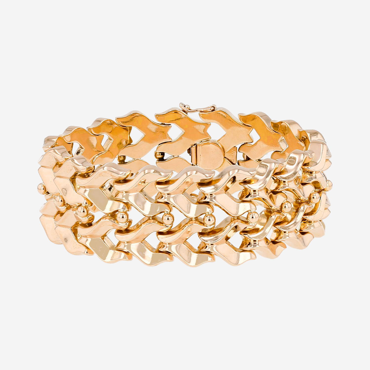 Brazalete época años 50 Mellerio de oro rosa, estilizando un muy elegante cinta ondulada articulada de oro rosa.