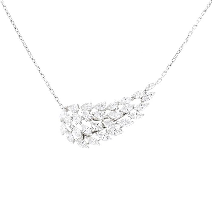 Collar Messika de oro blanco y diamantes, compuesto de un magnífico diseño calado d'aile d'ange de oro blanco, adornado de un espléndido engaste de diamantes de talla marquise pesando de aproximadamente 2.15 quilates, sujetado por una delgada cadena de oro blanco.