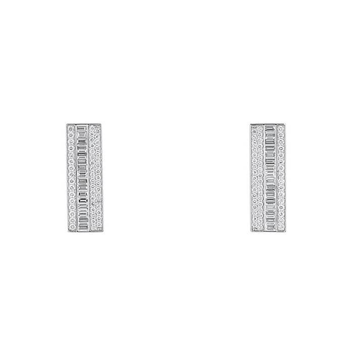 Magníficos pendientes Messika Liz de oro blanco y diamantes, compuestos de motivos rectangulares elegantemente pavimentados de diamantes de talla brillante de aproximadamente 1.50 quilate.