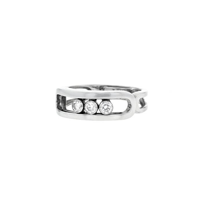 Elegante sortija de la colección "Move" de oro blanco y diamantes, compuesta de un diseño ovalado calado, que sujeta en el centro 3 magníficos diamantes movibles de talla brillante pesando de aproximadamente 0.25 quilate.