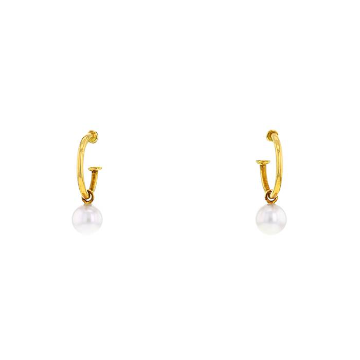 Delicados pendientes Mikimoto de oro amarillo y perlas cultivadas, compuestos de 2 delicadas criollas abiertas de oro amarillo, adornados de 2 encantadoras perlas cultivadas movibles.