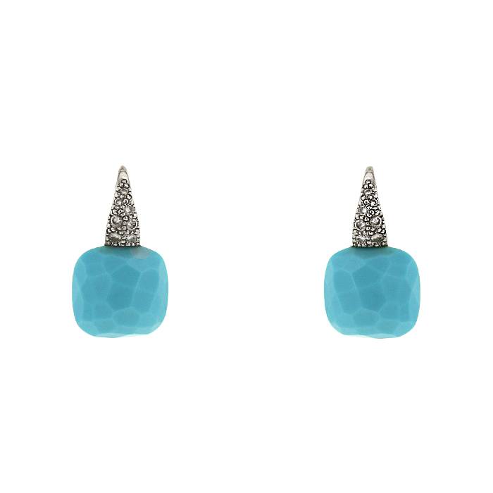 Pendientes Pomellato Capri en oro blanco, diamantes y turquesa Ref Collector Square: 33 54 12