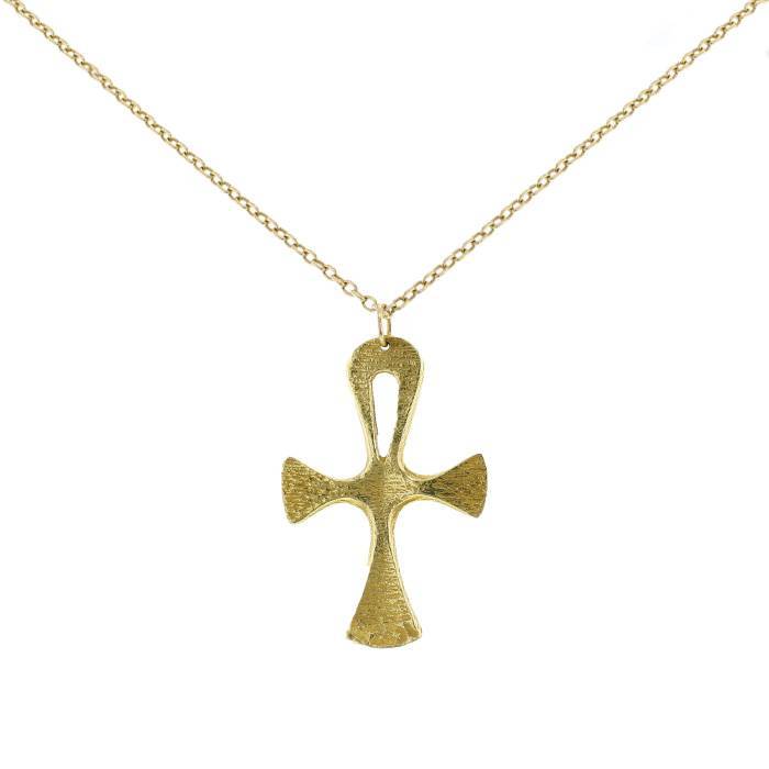 Colgante Pomellato de oro amarillo, en el cual figura una magnífica cruz ansée dite "ankh" de oro amarillo, adornado de un diseño texturado, sujetado por una bonita cadena de oro amarillo.