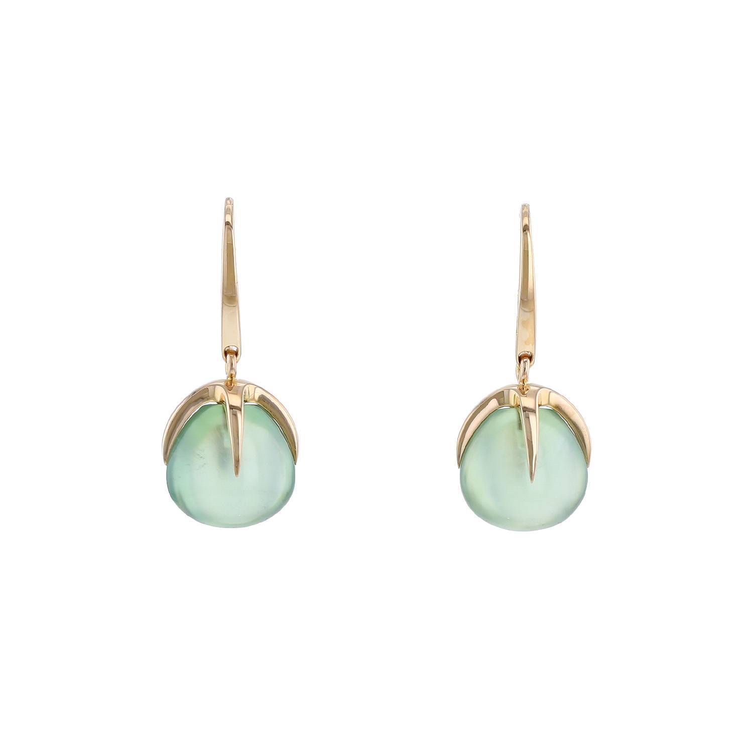 Pendientes Pomellato Veleno de oro rosa y prehnita, compuestos de una engaste de oro rosa, adornados de cabujones de prehnita, realzados de 4 originales garras.