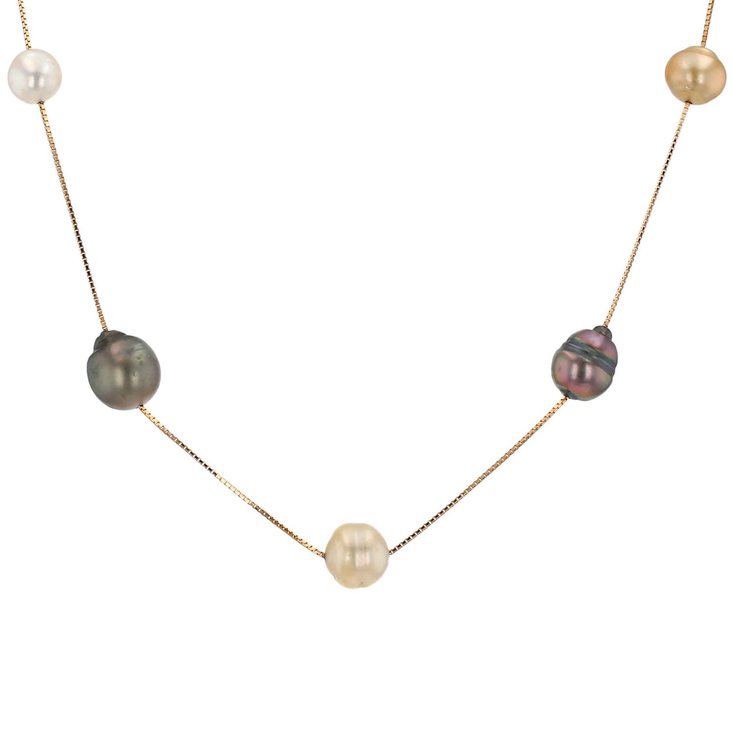 Collar Tasaki de oro amarillo y perlas, compuesto de una cadena cuadrada de oro amarillo, adornado de perlas.