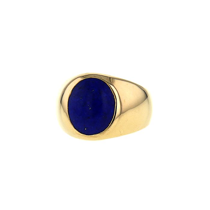 Elegante anillo de sello Tiffany & Co de oro amarillo de 14 quilates y lapislázuli, compuesto de un elegante anillo abombado de oro amarillo de 14 quilates, adornado en el centro de un muy bonito cabujón de lapislázuli.