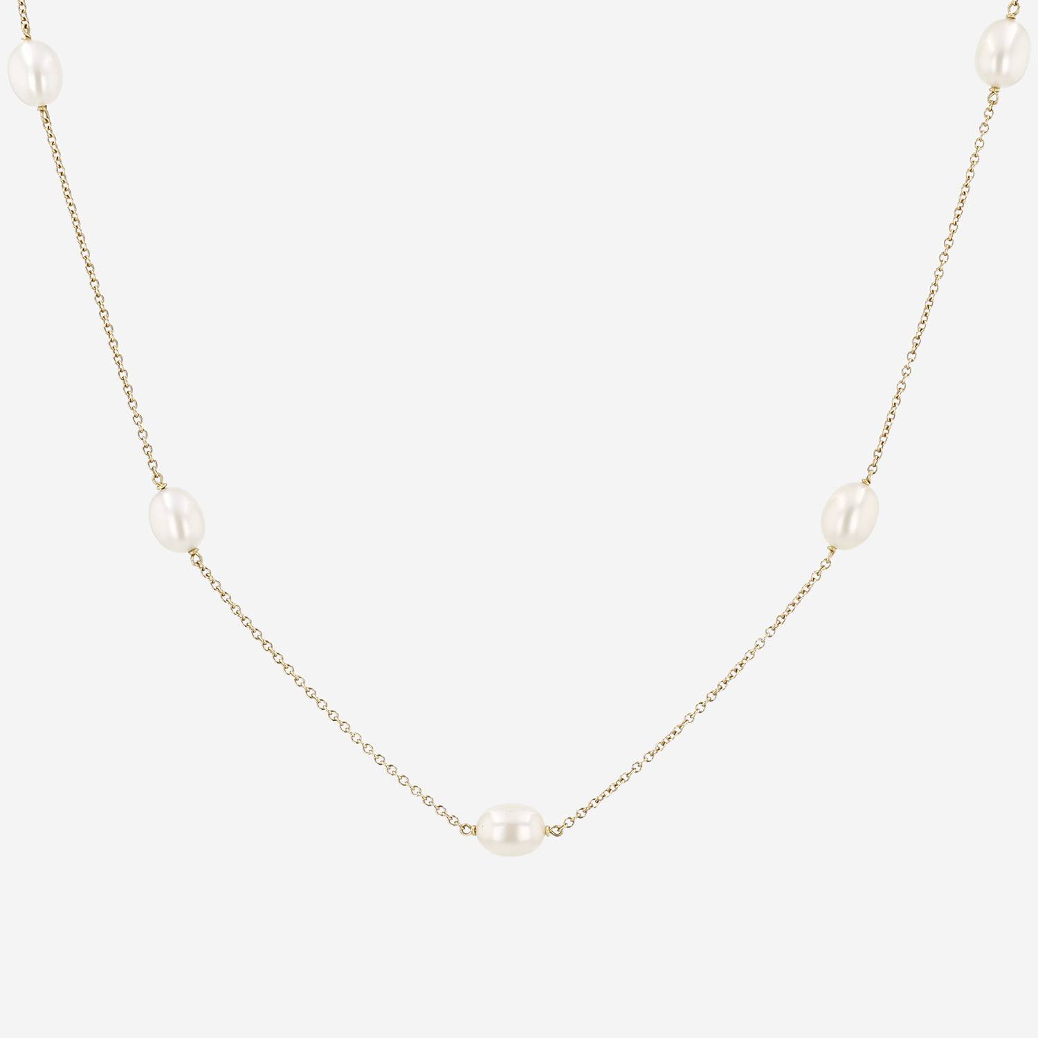 Collar Tiffany & Co de oro amarillo y perlas cultivadas, compuesto de una delgada cadena de oro amarillo, adornado de una sucesión de delicadas perlas cultivadas ovaladas.