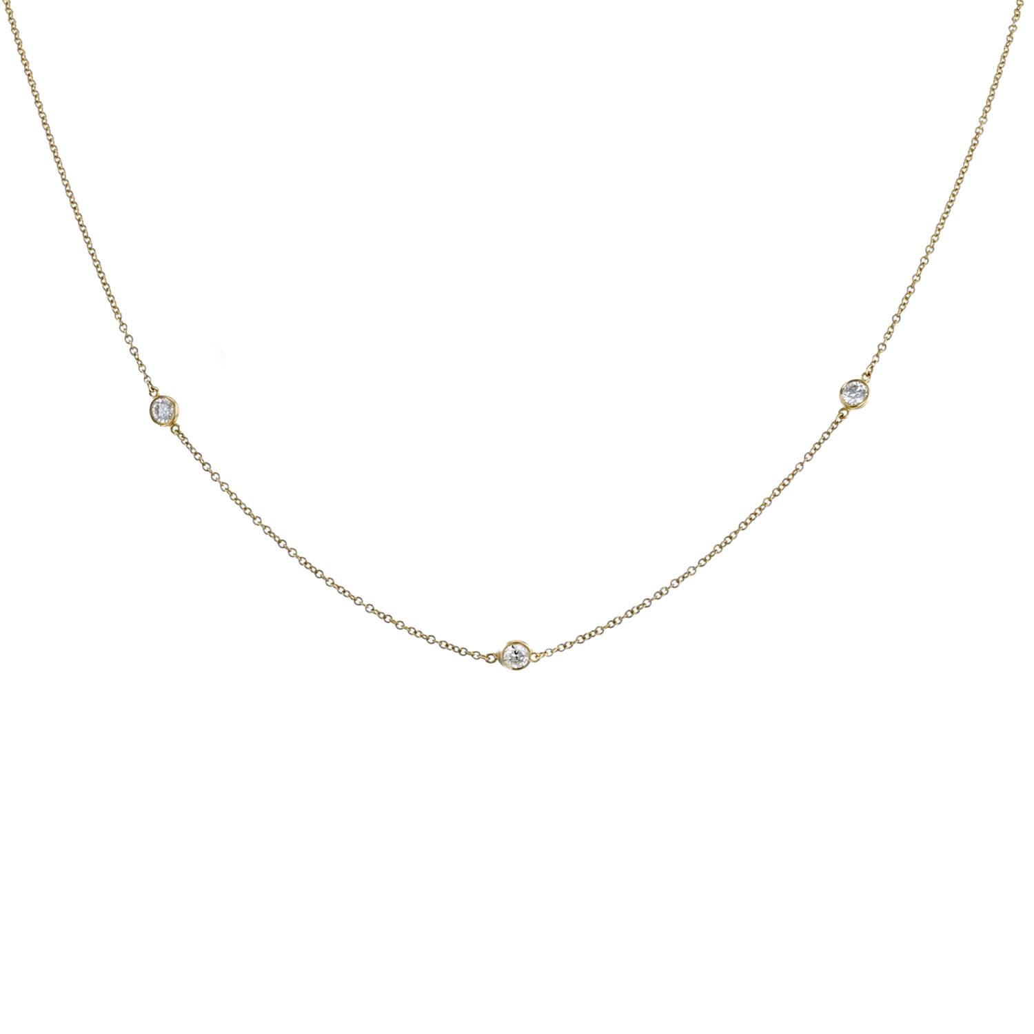 Collar Tiffany & Co Diamonds By The Yard de oro amarillo y diamante, compuesto de una delicada cadena de oro amarillo, que sujeta en el centro de una sucesión de muy bonitos diamantes de talla brillante pesando en total 0.25 quilate delicadamente engastados cerrados.