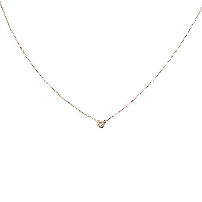Collar Tiffany & Co Diamonds By The Yard de oro rosa y diamante, compuesto de una delicada cadena de oro rosa, que sujeta en el centro un bonito diamante de talla brillante pesando de aproximadamente 0.03 quilate.