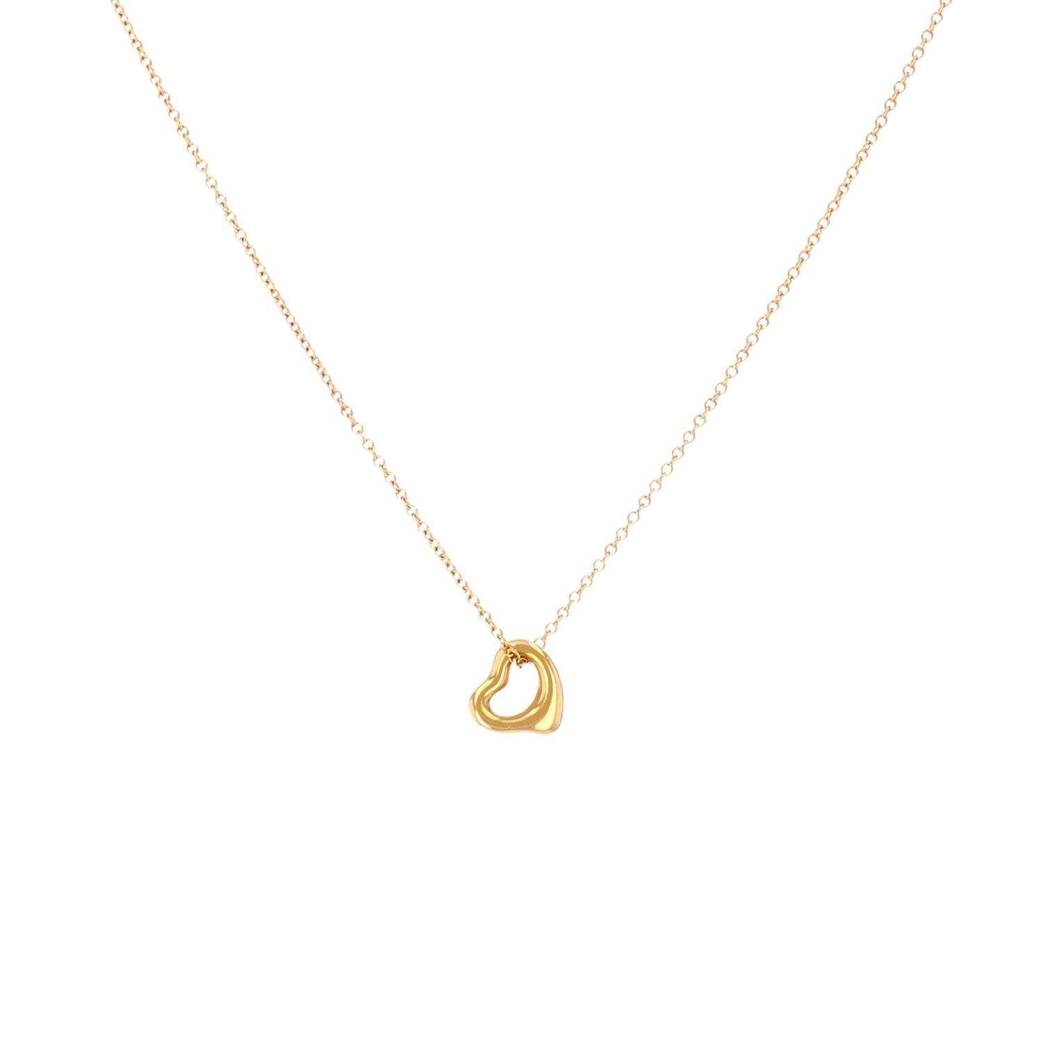 Precioso collar Tiffany & Co Open Heart mini de oro rosa, en el cual figura un elegante corazón ondulado calado de oro rosa, sujetado por una delgada cadena de oro rosa.