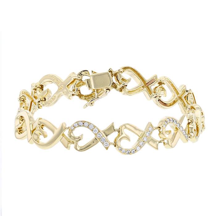Brazalete Tiffany & Co Loving Heart de oro amarillo y diamantes, compuesto de una sucesión de preciosos corazones ondulados calados de oro amarillo, realzado en el centro de 3 motivos parcialmente engastados de diamantes de talla brillante.