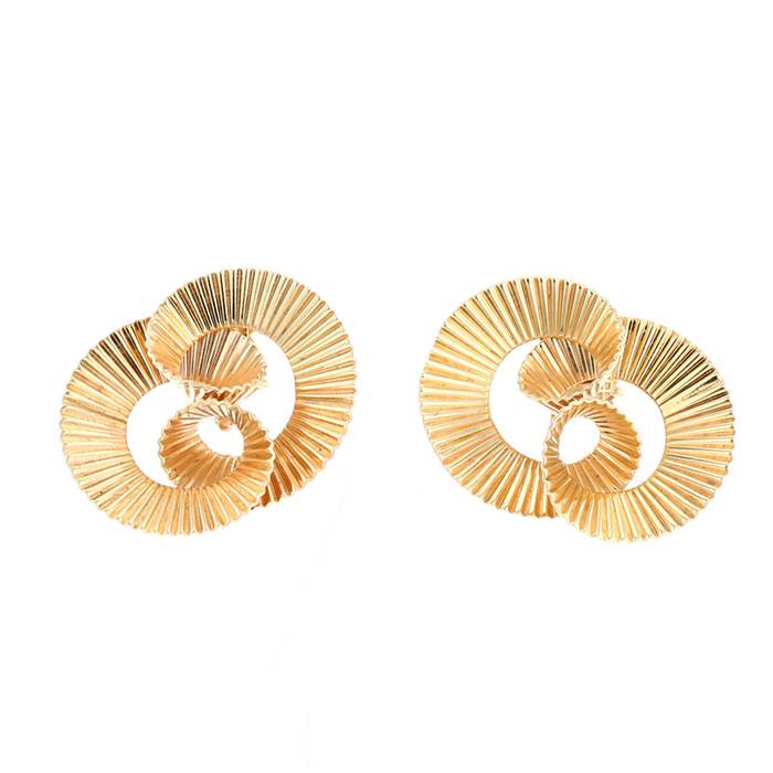 Pendientes Tiffany & Co de oro amarillo de 14 quilates, compuestos de elegante engaste con forma de espiral calado.