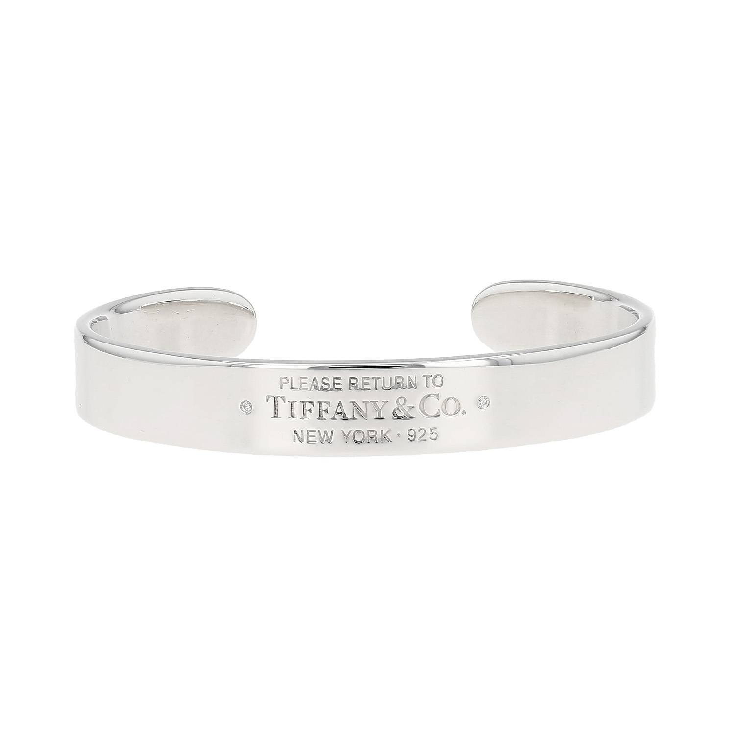 Brazalete redondo abierto Tiffany & Co Return To Tiffany de plata y diamantes, compuesto de un elegante anillo grabado "Please Return To Tiffany & Co New York" de plata delicadamente engastado de diamantes de talla brillante.