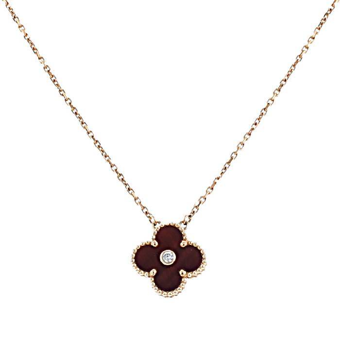 Collar Van Cleef & Arpels Holiday Alhambra (2017) de oro rosa, ojo de tigre rojo y diamante Ref Collector Square: 40 18 80
