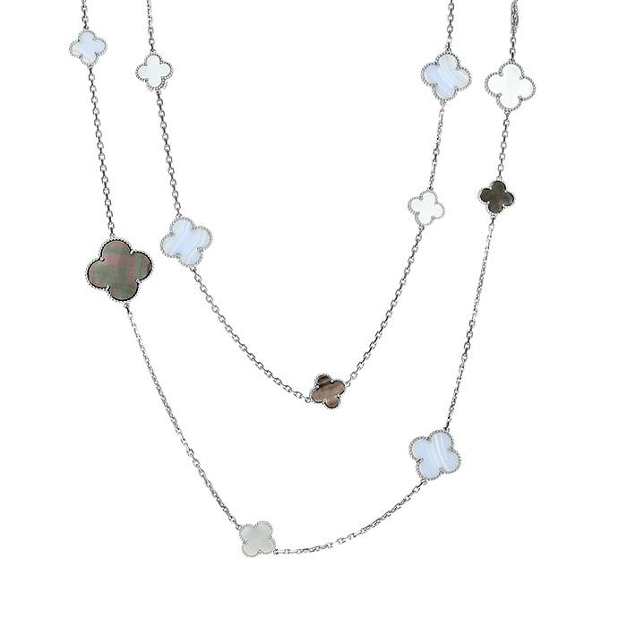 Collar Van Cleef & Arpels Magic Alhambra de oro blanco, nácar y calcedonia Ref Collector Square: 40 19 30
