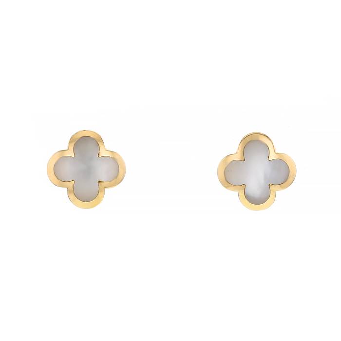Pendientes Van Cleef & Arpels Pure Alhambra en oro amarillo y nácar blanco Ref Collector Square: 35 73 15