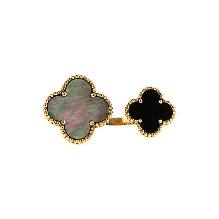 Sortija Van Cleef & Arpels Magic Alhambra en oro amarillo, ónix y nácar gris Ref Collector Square: 33 61 87