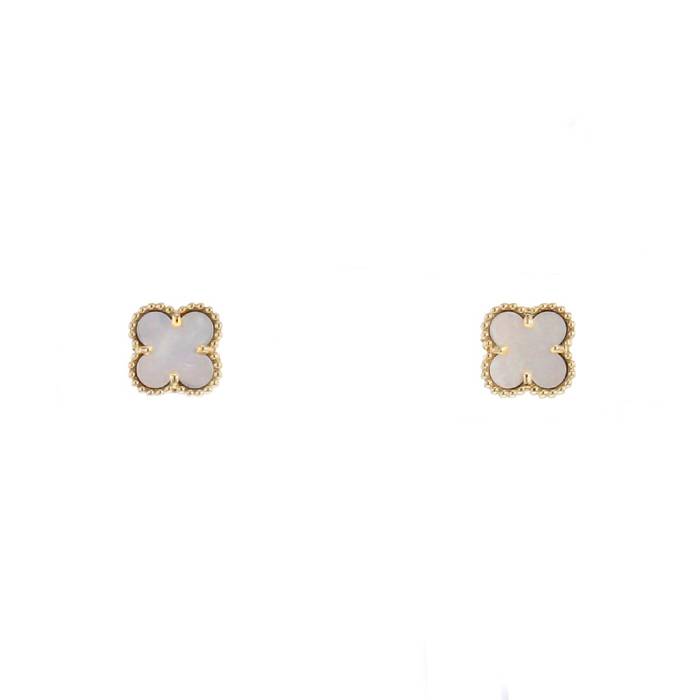 Pendientes Van Cleef & Arpels Sweet Alhambra en oro amarillo y nácar blanco Ref Collector Square: 34 88 12