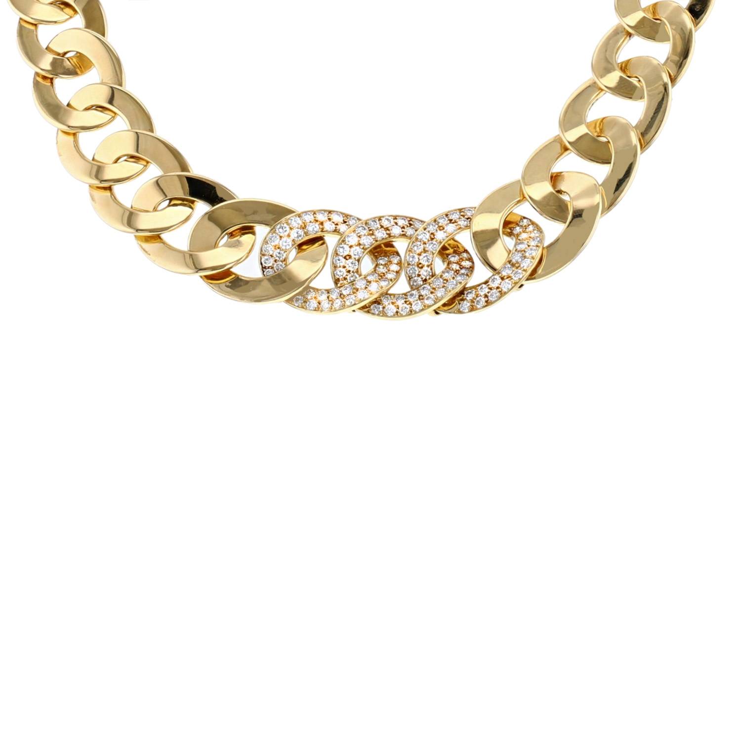 Collar Van Cleef & Arpels Olympia de oro amarillo y diamantes, compuesto de una sucesión de magníficos eslabones redondos articulados entrelazados de oro amarillo, realzado en el centro de 3 eslabones delicadamente engastados de 2,30 carat diamantes de talla brillante.
