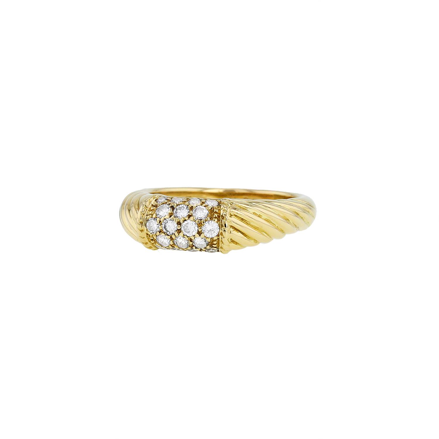 Y codiciada sortija Van Cleef & Arpels Philippine de oro amarillo y diamantes, compuesta de un elegante anillo gallonado de oro amarillo, adornada en el centro de un muy bonito empedrado de diamantes de talla brillante.