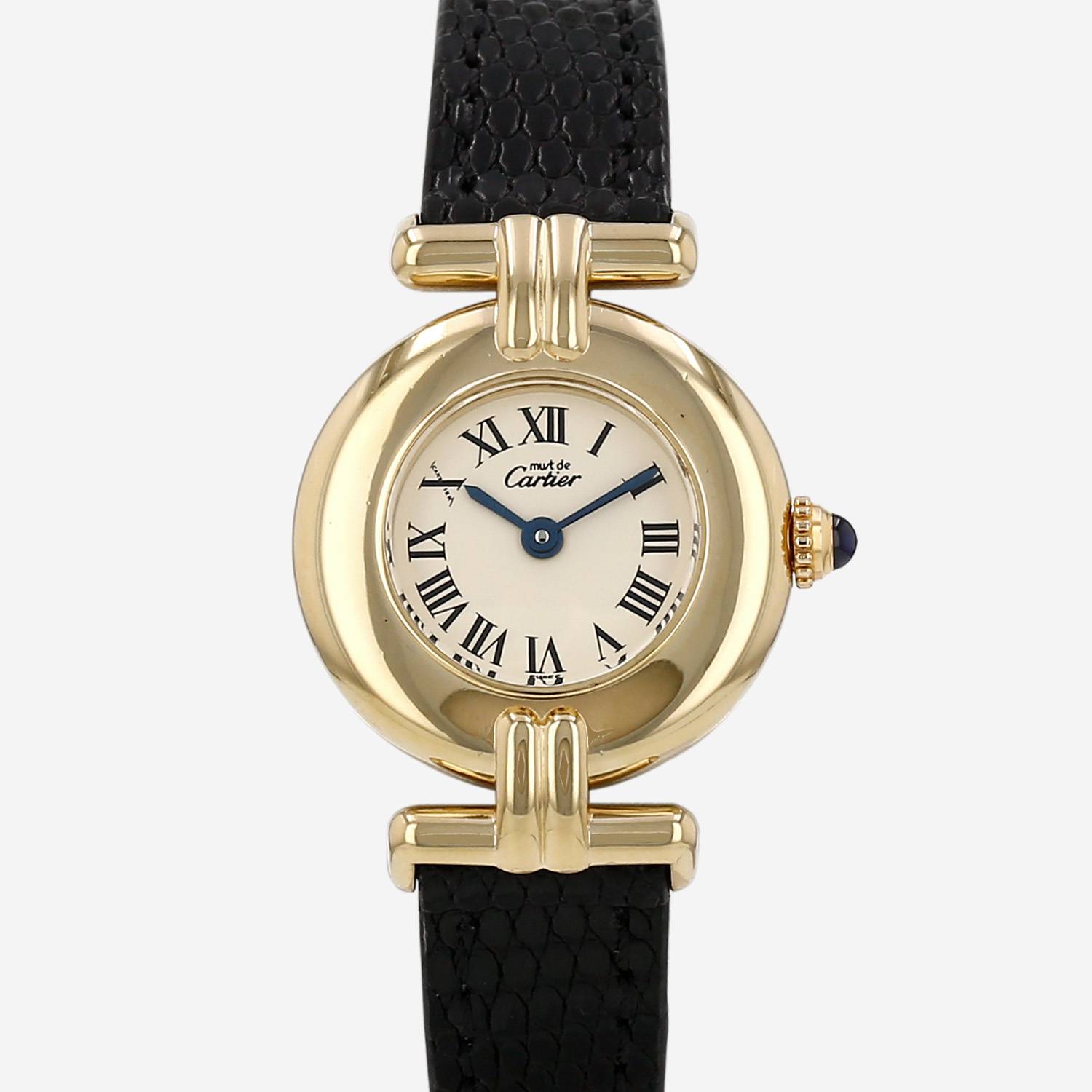Reloj de pulsera Cartier Colisee de plata dorada. Caja de reloj redonda de plata dorada, fondo de caja con clip, corona acanalada engastada con un cabujón zafiro.