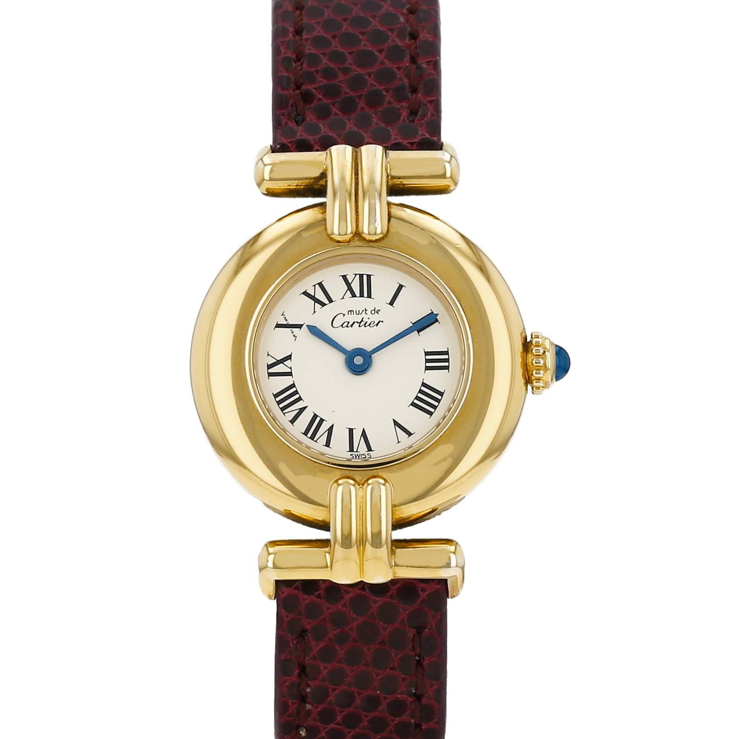 Reloj de pulsera Cartier Must Colisée de plata dorada. Caja de reloj redonda de plata dorada, fondo de caja enroscado, corona engastada con un cabujón zafiro.