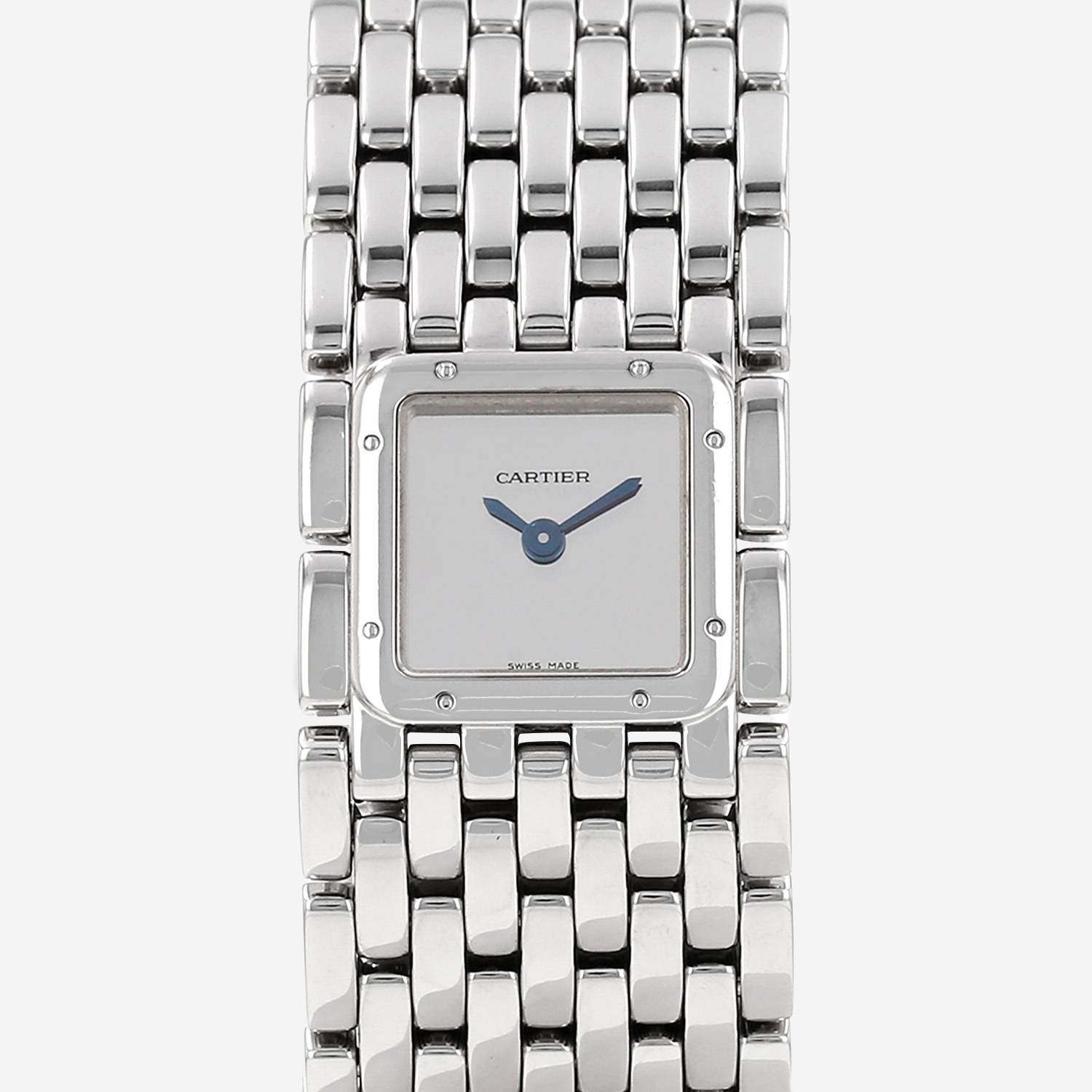 Reloj de pulsera Cartier Panthère ruban de acero. Caja de reloj cuadrada de acero, fondo de caja enroscado, bisel enroscado, corona integrado en la caja de reloj.