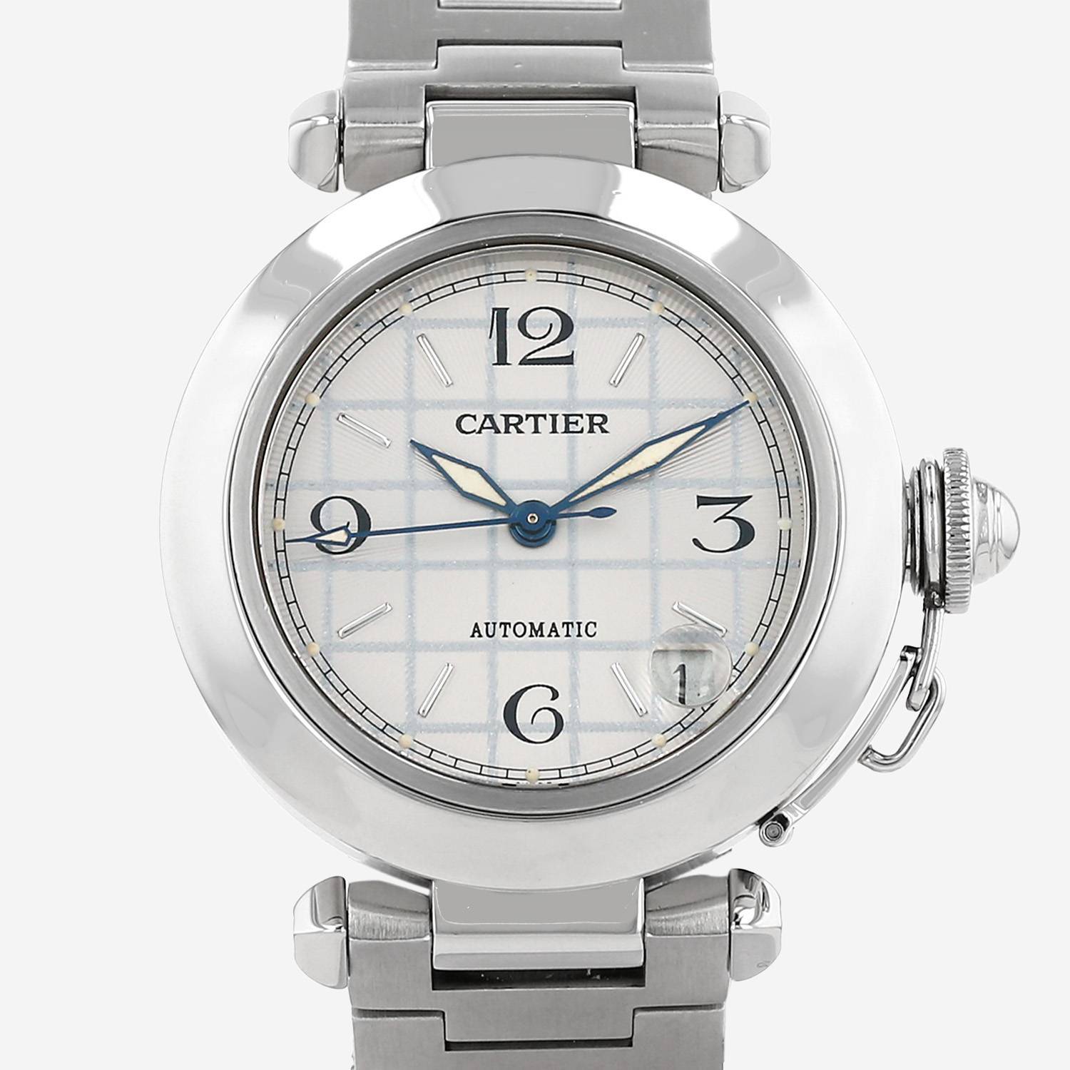 Reloj de pulsera Cartier Pasha de acero. Caja de reloj redonda de acero, fondo de caja enroscado, protección de corona enroscada.