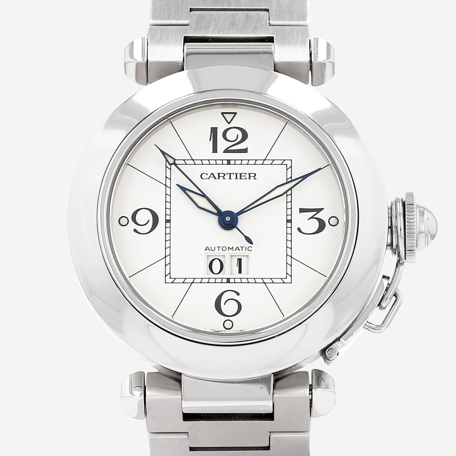 Reloj de pulsera Cartier Pasha de acero. Caja de reloj redonda de acero, fondo de caja enroscado, protección de corona enroscada.