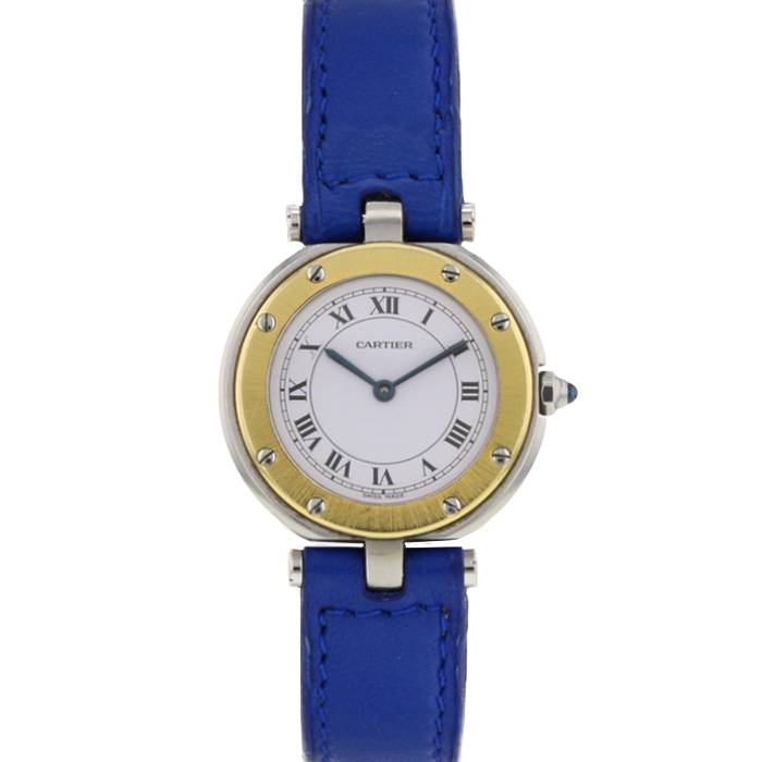- Pulsera de cuero azul signé Cartier, hebilla desplegable de acero signée Cartier.