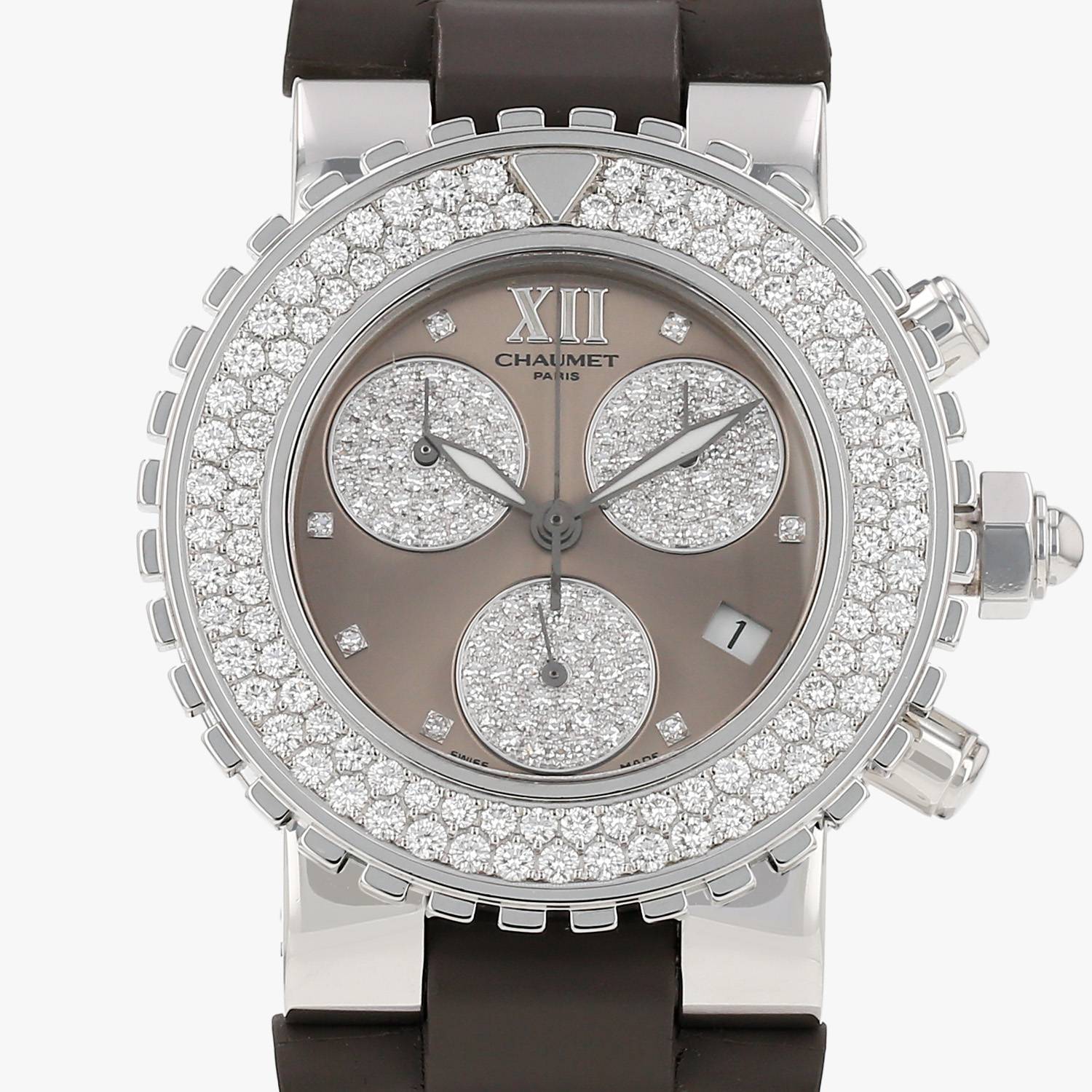 Reloj de pulsera Chaumet Class One de acero. Caja de reloj redonda de acero, fondo de caja enroscado, bisel graduado giratorio unidireccional de acero engastada con diamantes, corona enroscada.