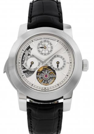 GIRARD PERREGAUX OPERA TWO MINUTE.REPEATER PERPETUAL CALENDAR PLATINUM.Girard-Perregaux, Opera Two, Tourbillon, Westminster Minute Repeater.Perpetual Calendar, No. 3, Ref. 99740. Made circa 2003..Extremely fine, rare and important, minute-repeating platin