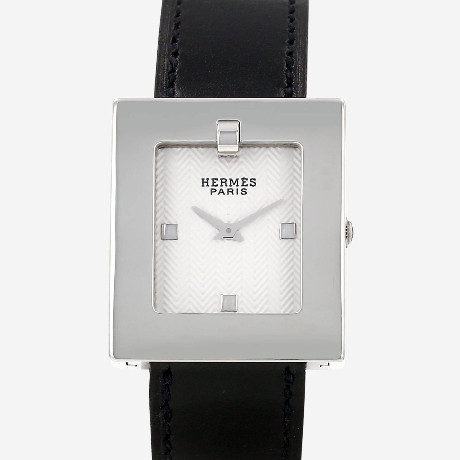 Reloj de pulsera Hermès Belt de acero. Caja de reloj rectangular de acero, fondo de caja enroscado, corona acanalada.
