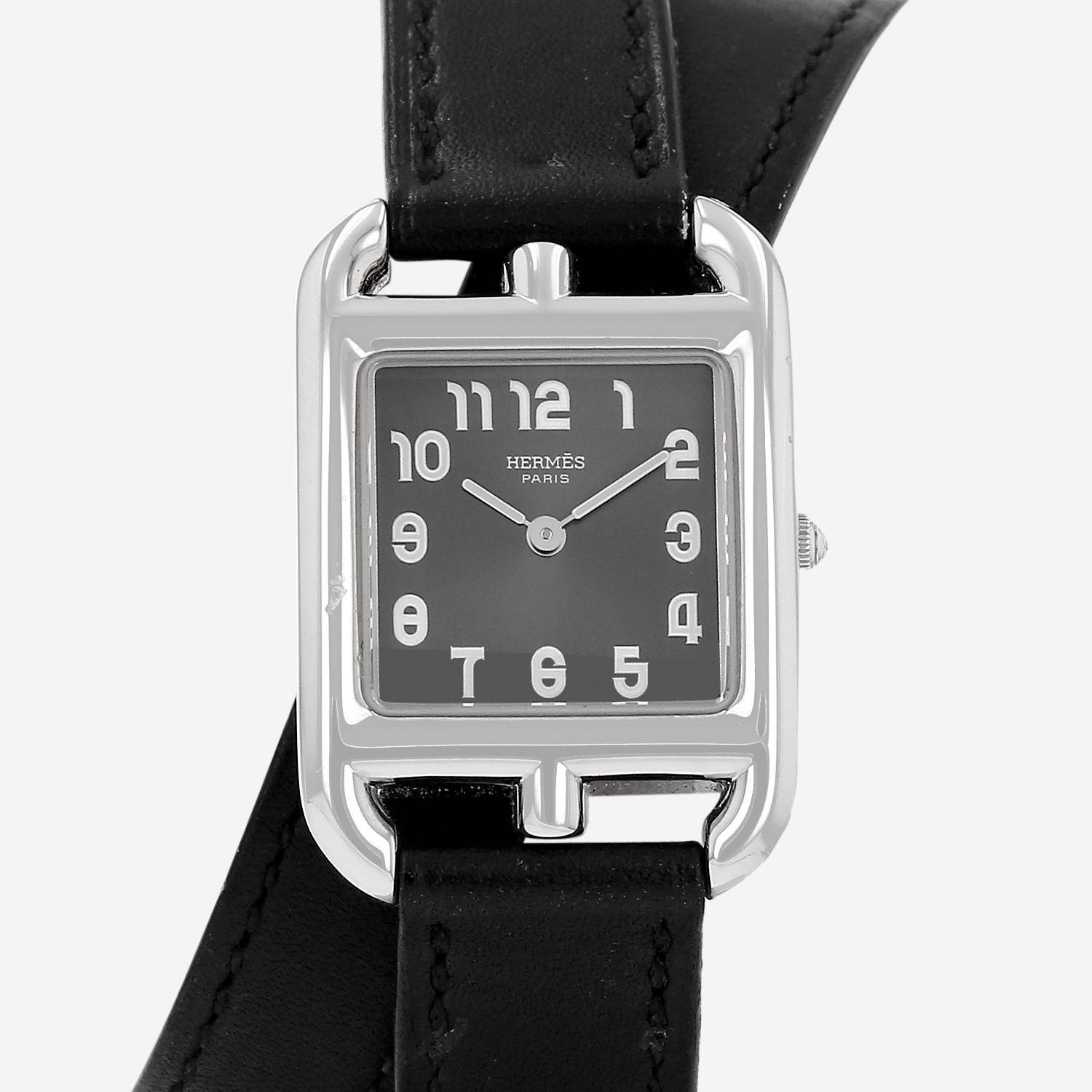 Reloj de pulsera Hermès Cape Cod de acero. Caja de reloj rectangular de acero, fondo de caja enroscado, corona acanalada.