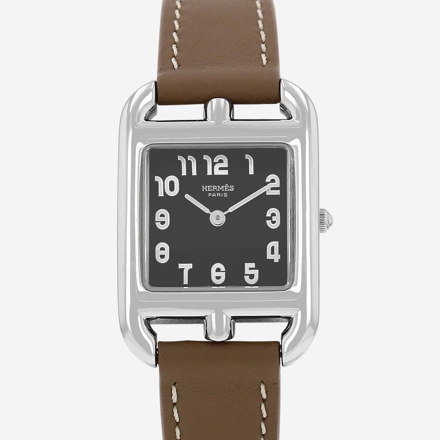 Reloj de pulsera Hermès Cape Cod de acero. Caja de reloj rectangular de acero, fondo de caja enroscado, corona acanalada.