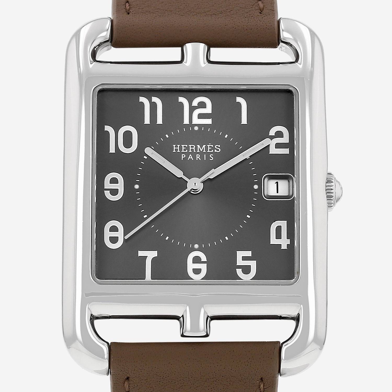 Reloj de pulsera Hermès Cape Cod de acero. Caja de reloj rectangular de acero, fondo de caja enroscado, corona acanalada.