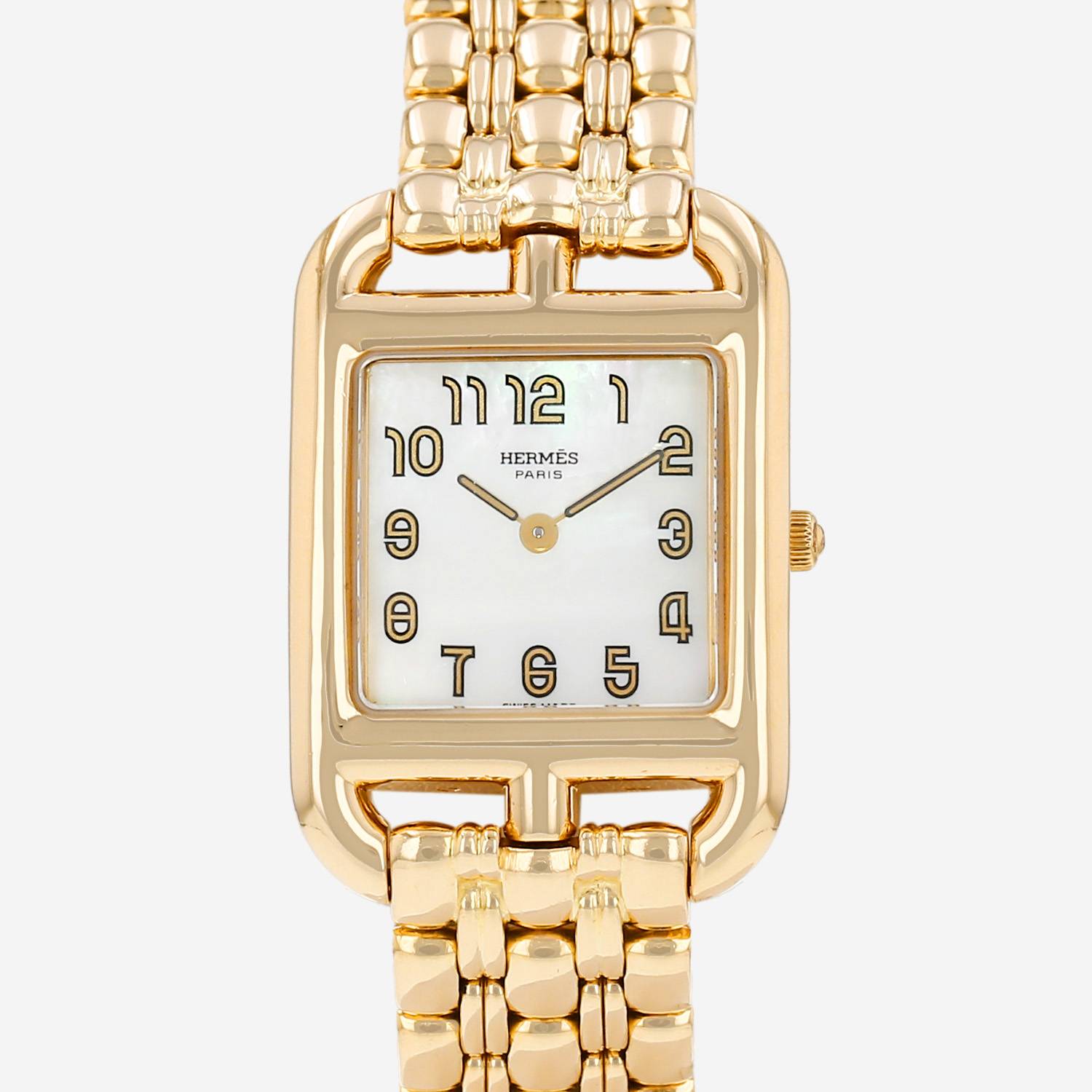Reloj de pulsera Hermès Cape Cod de oro amarillo. Caja de reloj rectangular de oro amarillo, fondo de caja enroscado, corona acanalada.