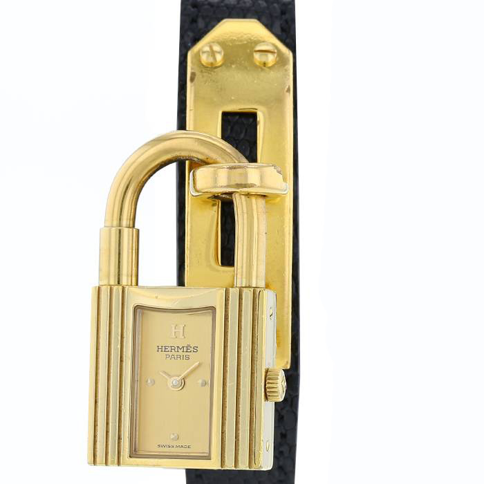 Reloj de pulsera Hermes Kelly-Cadenas de oro chapado. Caja de reloj cuadrada triplemente gallonada, corona acanalada.