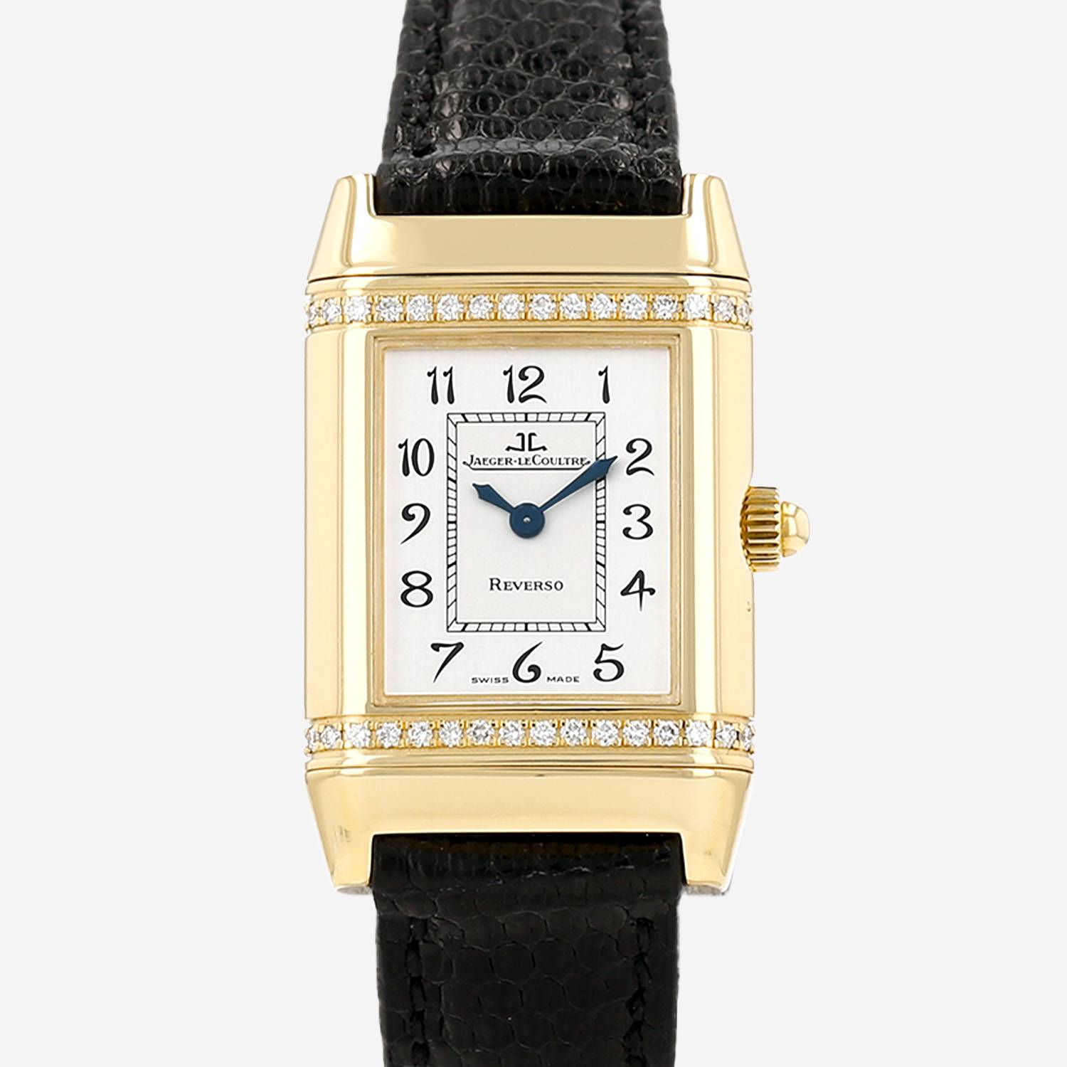 Reloj de pulsera Jaeger-LeCoultre Reverso de oro amarillo. Caja de reloj rectangular de oro amarillo engastada con diamantes reversible, fondo de caja enroscado, corona acanalada.