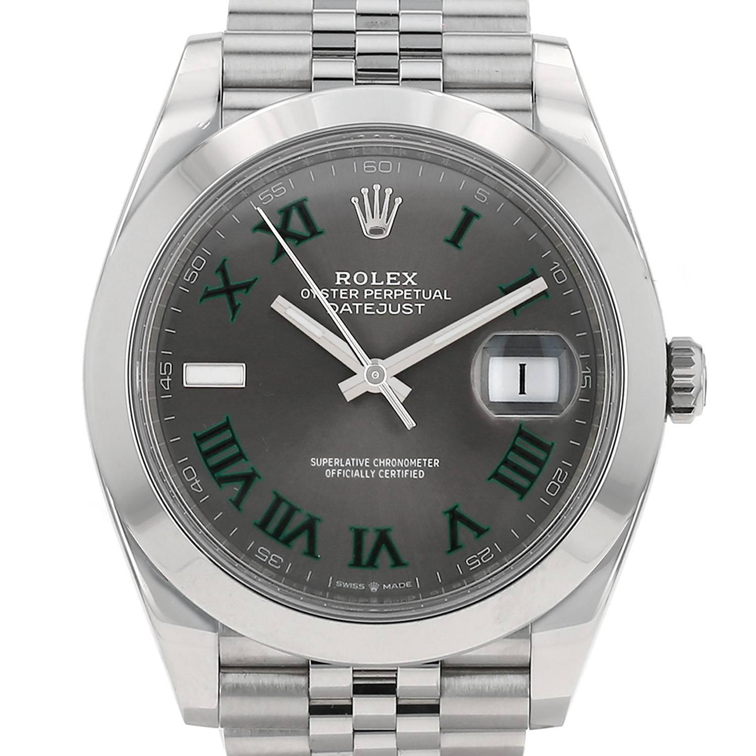 Reloj de pulsera Rolex Datejust 41 de acero. Caja de reloj redonda de acero, fondo de caja enroscado, bisel liso, corona enroscada.