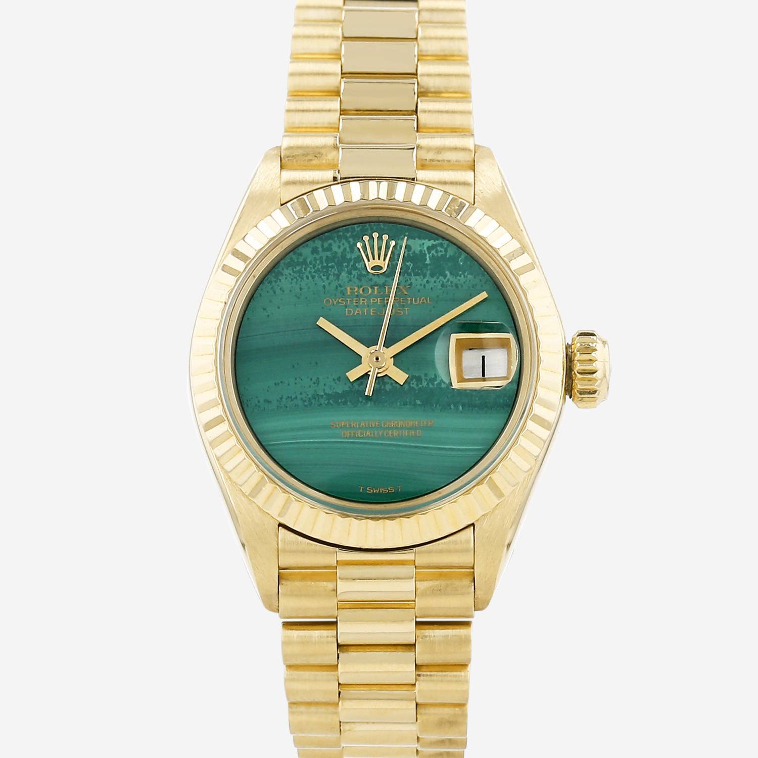 Reloj de pulsera Rolex Datejust Lady de oro amarillo. Caja de reloj redonda de oro amarillo, fondo de caja enroscado, bisel estriado de oro amarillo, corona enroscada.