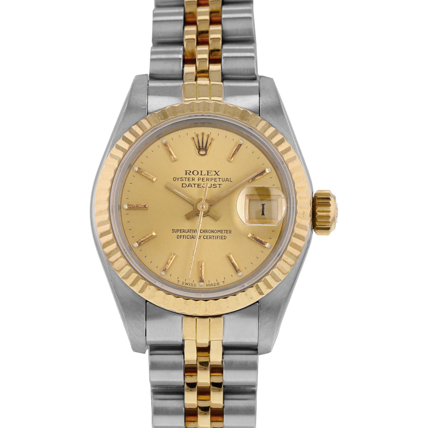 Reloj de pulsera Rolex Datejust Lady de oro y acero. Caja de reloj redonda de acero, fondo de caja enroscado, bisel estriado de oro amarillo, corona enroscada.