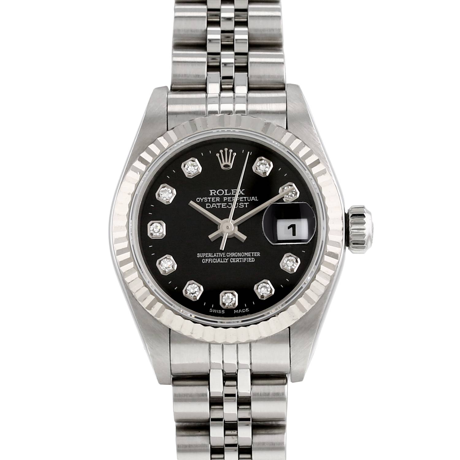 Reloj de pulsera Rolex Datejust Lady de oro y acero. Caja de reloj redonda de acero, fondo de caja enroscado, bisel estriado de oro blanco, corona enroscada.
