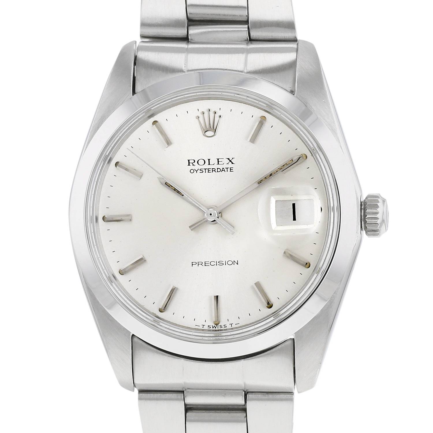Reloj de pulsera Rolex Oyster Date Precision de acero. Caja de reloj redonda de acero, bisel liso de acero, corona enroscada.