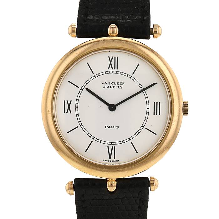 Elegante reloj de pulsera Van Cleef & Arpels de oro rosa. Caja de reloj redonda de oro rosa, fondo de caja con clip, corona acanalada.
